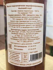 Масло подсолнечное нерафинированное, 460 г.