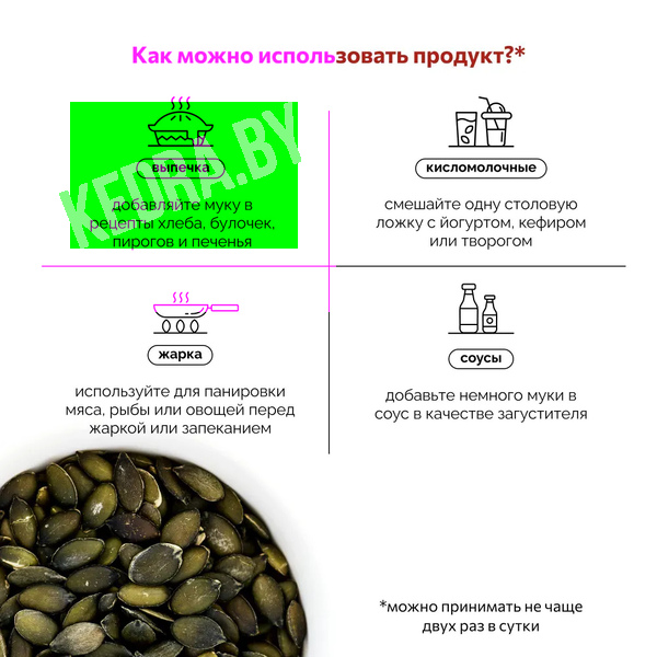 · Для салата и салатов: как посыпка или загуститель заправок; смешивайте с йогуртом, сметаной или соусом.