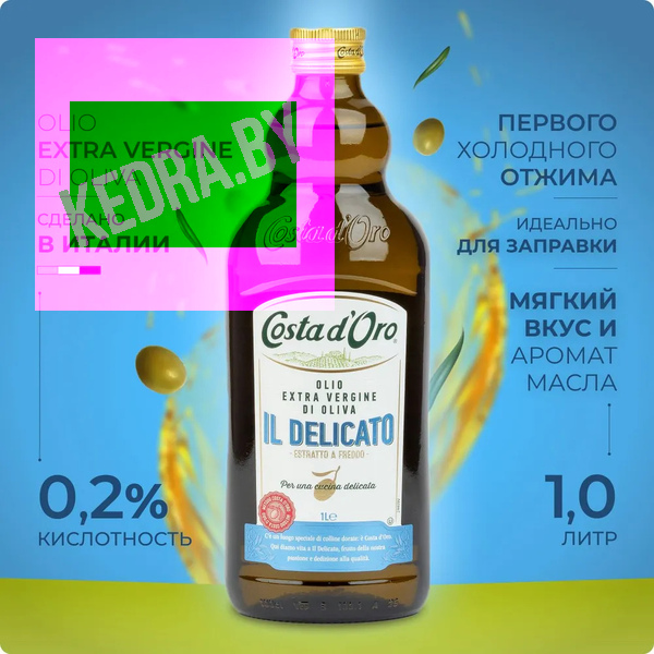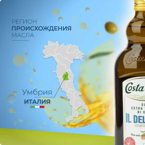 Оливковое масло COSTA D'ORO Extra Virgin IL DELICATO нерафинированное высшего качества 1 л ст/бут