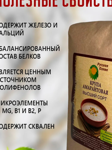 Крупа амарантовая быстроразваривающаяся – продукт здорового питания для взрослых и детей, богатый питательными веществами, витаминами, микроэлементами, оказывает положительное воздействие на здоровье организма и функционирование всех его систем.