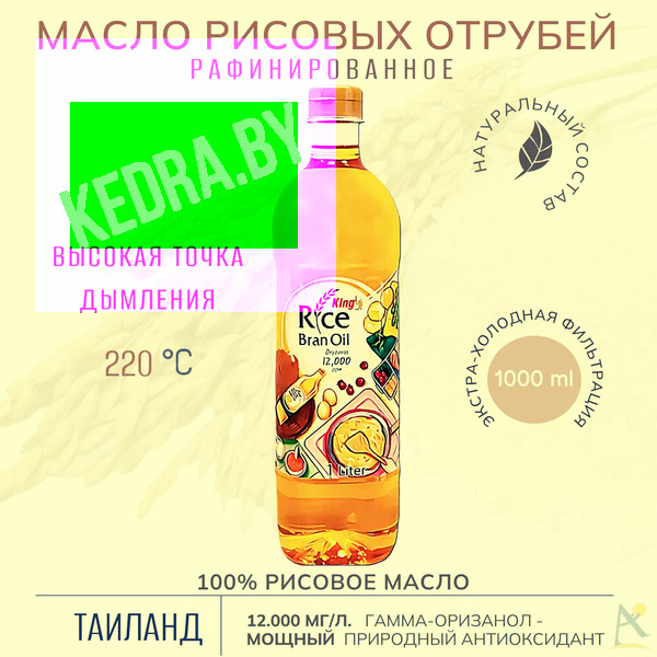 Рисовое масло для жарки KING 1000 мл это высококачественное растительное масло из отборных рисовых отрубей.