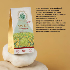 Тыквенная мука — натуральная обезжиренная мука из семечек штирийской голосемянной тыквы. Сырьё — тыква с характерным ярким вкусом: после отжима масла жмых бережно сушат и перемалывают до мелкого помола. В составе нет пшеницы и других злаков с глютена, поэтому она часто используется как безглютеновая альтернатива. Если вам важен строгий режим «без глютена», ориентируйтесь на информацию производителя и условия производства.