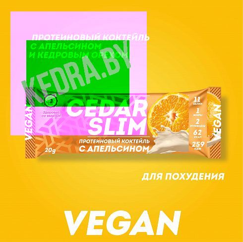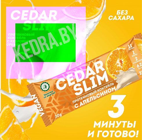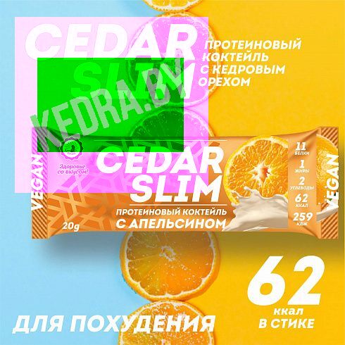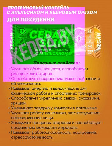 Протеиновый апельсиновый коктейль CEDAR SLIM с кедровым орехом: идеальный выбор для женщин и мужчин в спортивном питании.