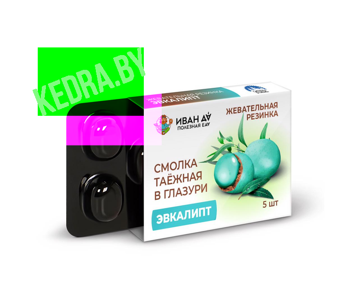 Резинка жевательная натуральная “Смолка таёжная в глазури эвкалипт”, 5шт