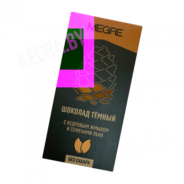 ШОКОЛАД ТЕМНЫЙ "MEGRE" С КЕДРОВЫМ ЖМЫХОМ И СЕМЕНАМИ ЛЬНА, 50 Г.