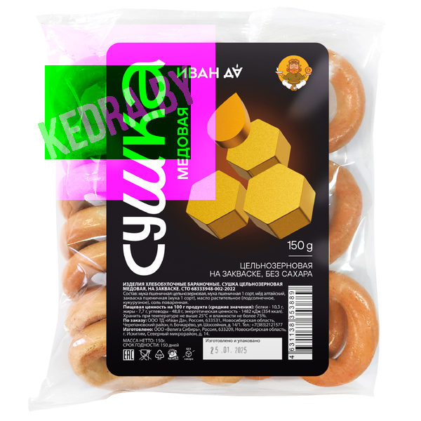 Сушка цельнозерновая с медом на закваске, 150г